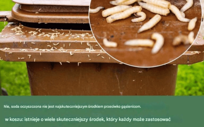 Otwierasz kosz na śmieci i czeka Cię niemiła niespodzianka: rój maleńkich, białych larw kłębiących się na dnie. Skąd się wzięły?…