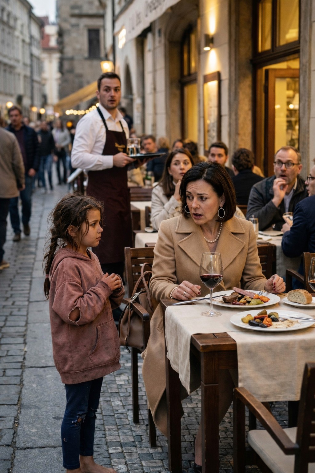 Bezdomna dziewczynka zapytała milionerkę: „Czy mogę zjeść to, czego pani nie dokończy?” — i to proste pytanie odmieniło wszystko