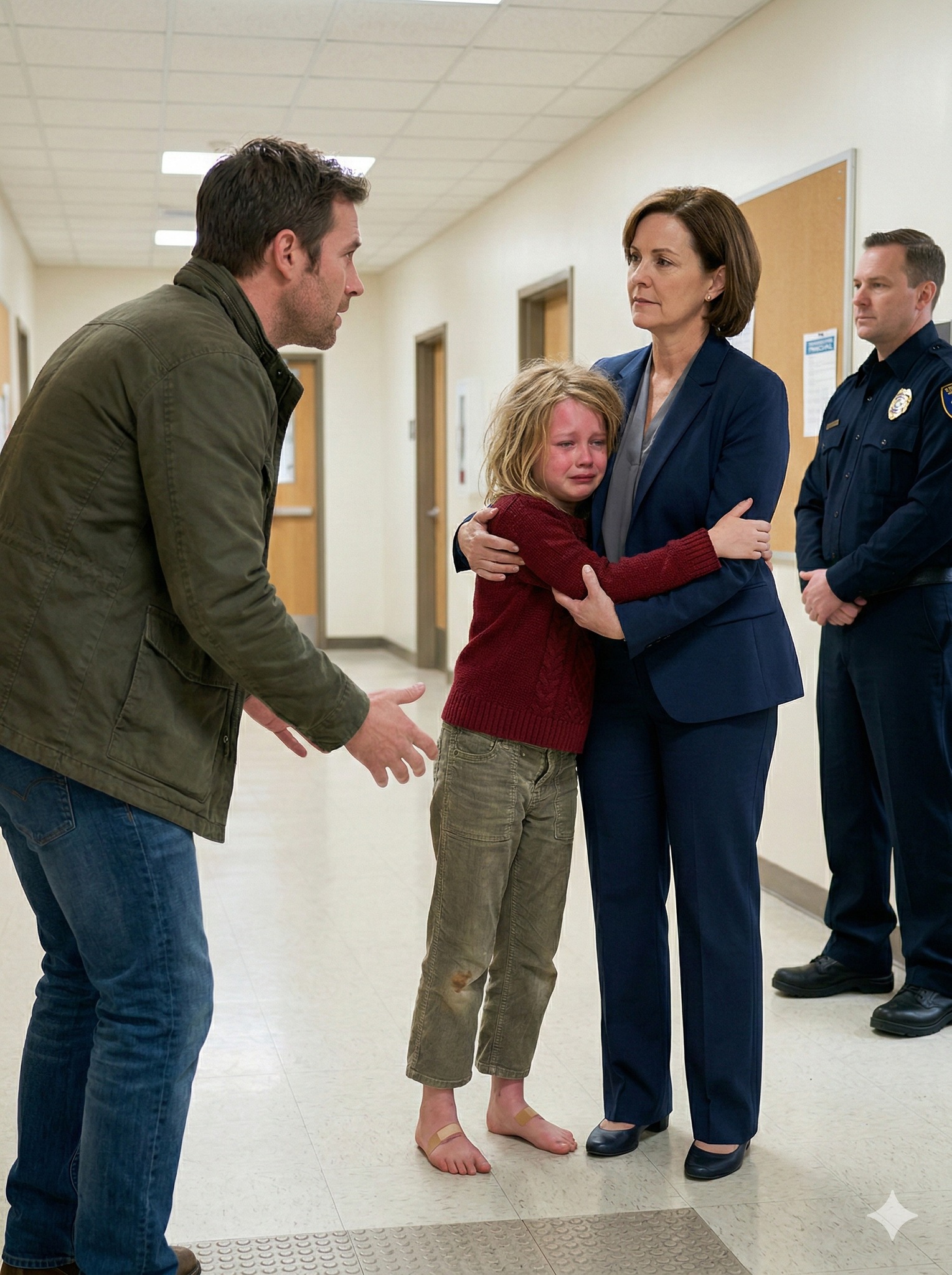 “Yes,” the principal said. “Officers and child services are on their way. The night custodian found her sitting near the front doors. She walked nearly a mile through the dark to get here.”