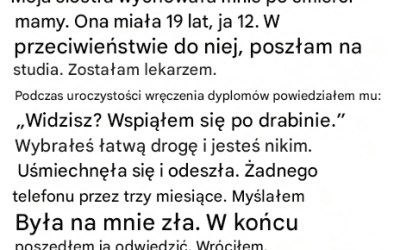 Myślałem, że sam zbudowałem swój sukces, aż do dnia, gdy szokujące odkrycie ujawniło mi ciche poświęcenia mojej siostry... i sprawia,…