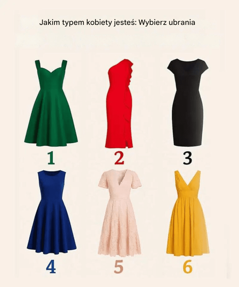 Moda to nie tylko tkaniny i kolory – to także odzwierciedlenie Twojej osobowości, pewności siebie i wewnętrznej energii. Ubrania, do których naturalnie dążysz, wiele mówią o tym, kim jesteś, jakie masz podejście do życia i jaką aurę ze sobą niesiesz. Przyjrzyj się sześciu strojom przedstawionym na zdjęciach i wybierz ten, który najbardziej chciałbyś założyć.