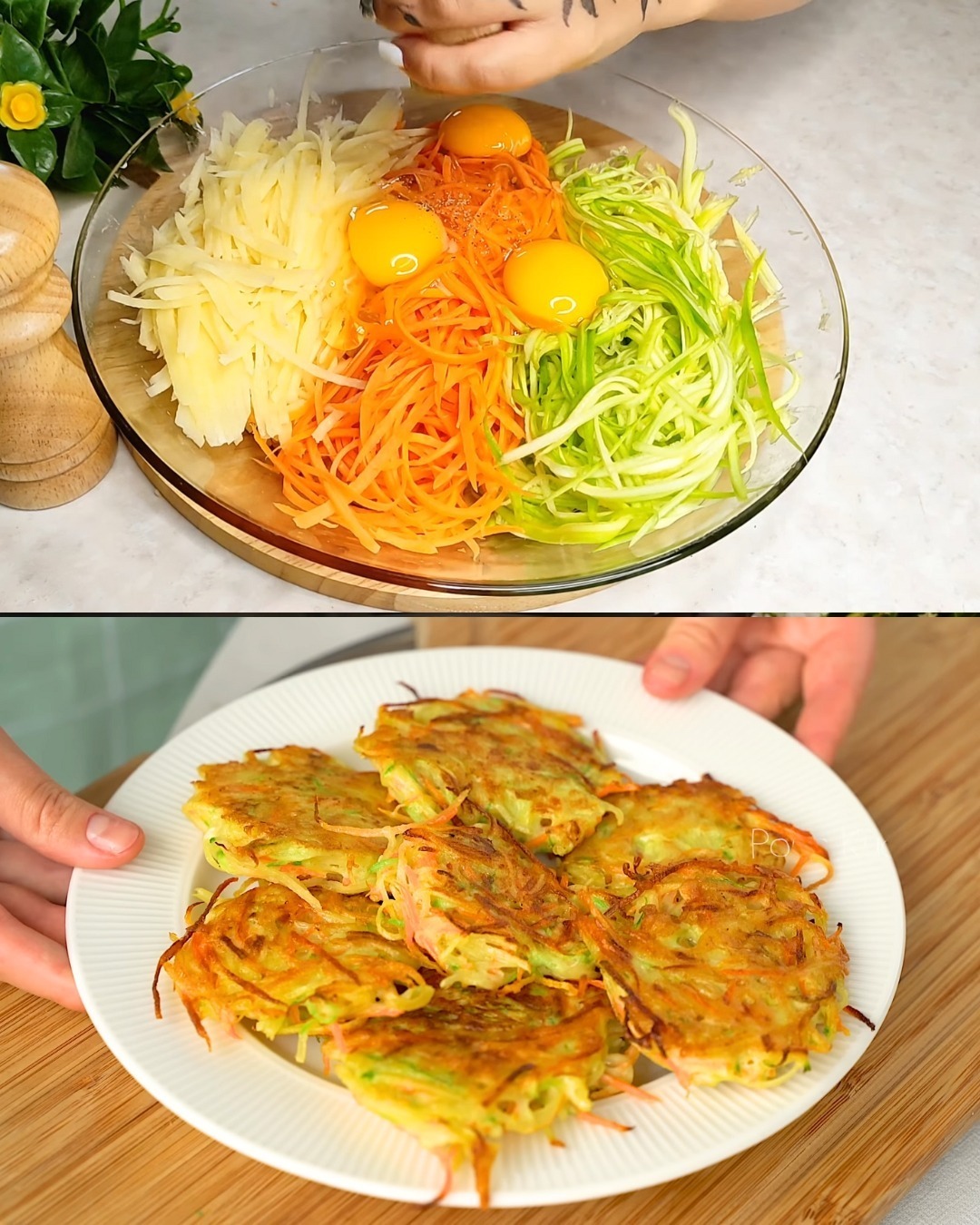 Odkryj szybki i prosty przepis na pyszne naleśniki warzywne! Te naleśniki są zrobione z mieszanki marchewki, ziemniaków i cukinii, dzięki czemu stanowią zdrową i pyszną alternatywę dla każdego posiłku. Idealne na śniadanie, lunch lub jako przekąska, te naleśniki szybko staną się podstawą Twojej diety. Zaczynajmy!