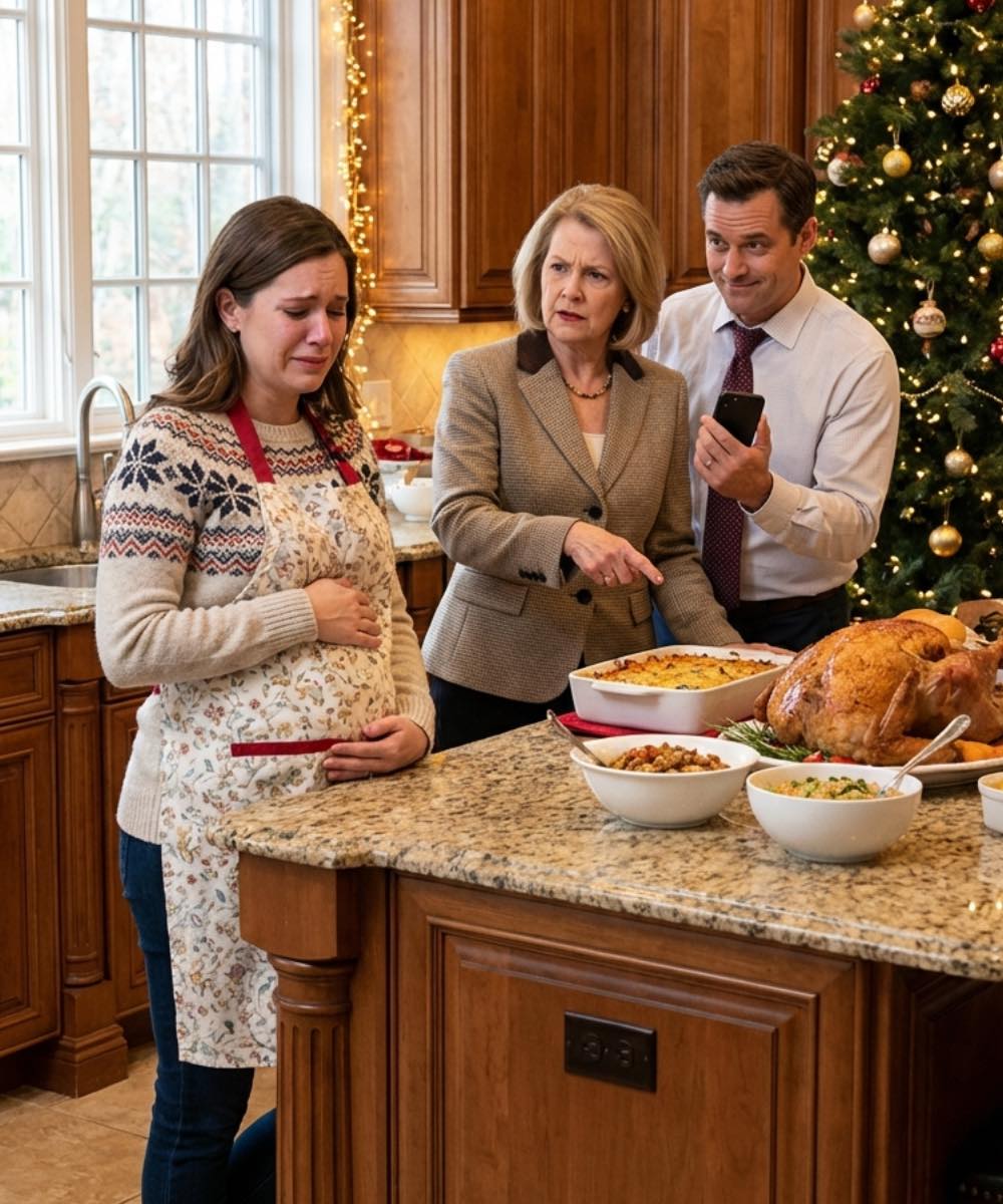 Centralnym przepisem posiłku był 9-kilogramowy indyk glazurowany bourbonem, syropem klonowym i skórką pomarańczową. Stał na blacie i parował.
