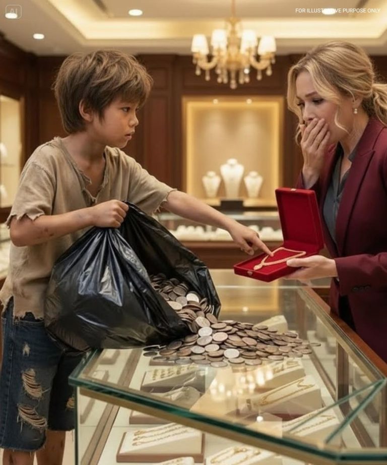 Mały, obdarty chłopiec w milczeniu wysypywał tysiące monet na szklaną ladę ekskluzywnego sklepu jubilerskiego.