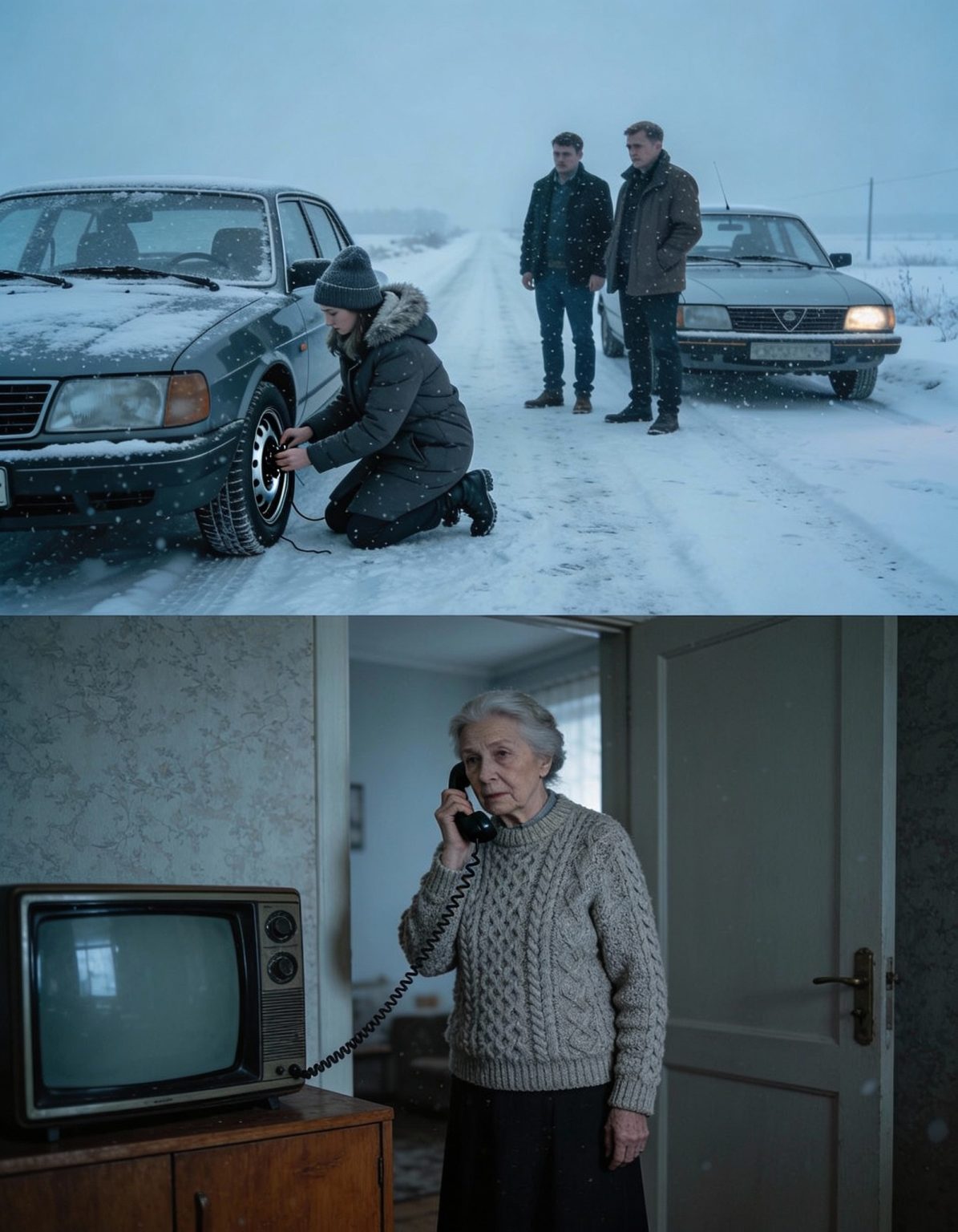 Prezenterka powiedziała poważnie: „Małżeństwo emerytów, które zaginęło w Boże Narodzenie, zostało odnalezione żywe. Oboje zostali uratowani dzięki interwencji kobiety, która zatrzymała się, aby im pomóc na autostradzie A2 w ekstremalnych warunkach pogodowych”.