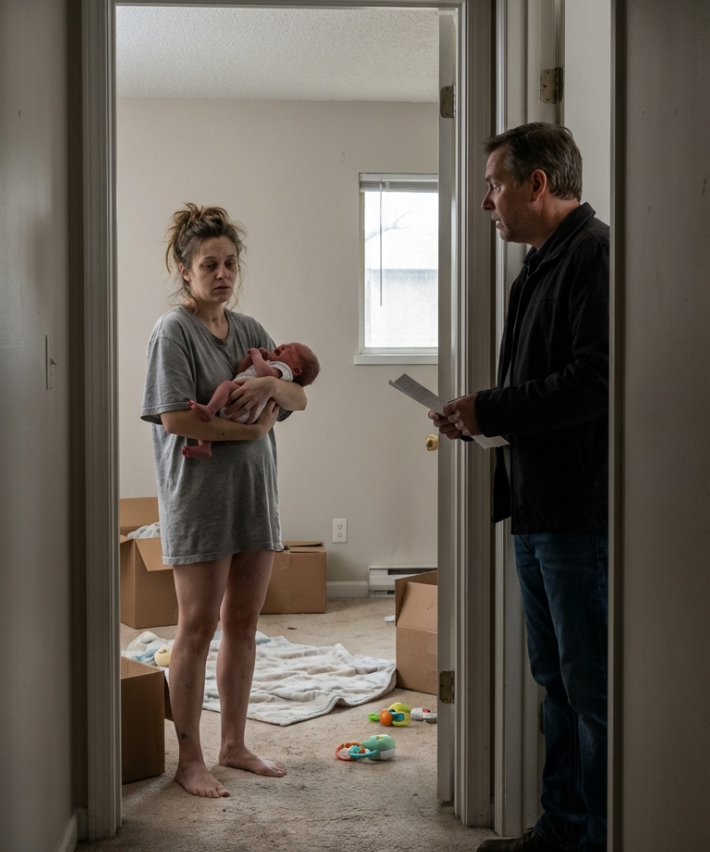 By the time I got the lock turned, she was standing there in the dark hallway with the baby clutched to her chest, her face drained white.